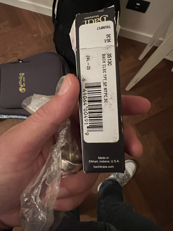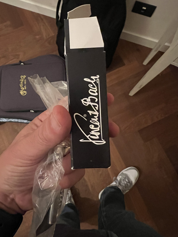 A parte il lato con la firma che non ce l'ho, gli ultimi 2 Bach comprati (svariati anni fa) sono identici come confezione e non ricordo che la sacca del bocchino fosse nera con il logo. L'ultimo comprato mi pare di no, però non le ho più.